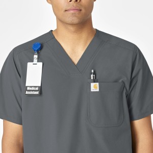Force Essentials Men's V-Neck Shirttail Scrub Top - Pewter