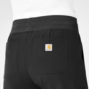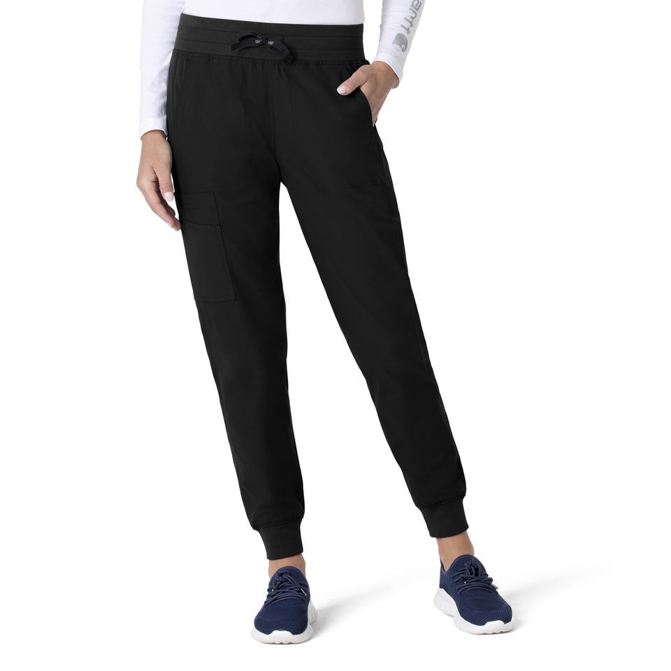 With a rib knit comfort waistband and full drawstring the Carhartt Force Essentials Women’s Jogger Pant is a must have for your medical scrubs uniform. These jogger style women’s scrubs have the classic rib knit jogger cuffs plus shaping darts at the back waist for additional style. You can move with ease in our sustainable recycled polyester fabric that is lightweight, durable, and features the Rugged Flex Stretch Technology for ultimate comfort and stretch. While on the move you can depend on Carhartt Scrubs FastDry fabric that keeps you dry and cool throughout your shift. Keeping all your essentials close at hand is easy thanks to the 7 easy to access pockets, including front, back and cargo pockets as well as a super handy pen tack for your penlight or a couple of extra pens. These jogger pants are sure to be an essential part of your daily wardrobe and you will want to grab one in every color! 50% Recycled Polyester/50% Polyester Womens Drawstring Mid Rise Modern Jogger Rib knit comfort waistband with Carhartt Force branded full drawstring Chic utilitarian functionality with 7 functional pockets, two front slash pockets with an inset connection, two back pockets, and a triple cargo pocket at the wearer's right side with a pen tack to keep pens handy FastDry® technology keeps you cool for all day comfort, built to move with Rugged Flex® stretch technology, Stain Breaker® technology releases stains Rib knit jogger bottom hem, plus darts at the back waist for additional style Lightweight, durable, sustainable and comfortable Ripstop fabric Carhartt Womens Scrub Pant Jogger Carhartt Core C51113 Machine wash cold with like colors on gentle. Tumble dry on low. Promptly remove from dryer. Cool iron if needed. Avoid using bleach or harsh chemicals.