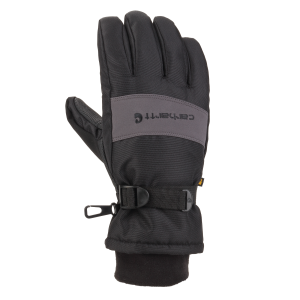Men's all-purpose winter gloves. These men's winter gloves keep you warm when the temperature plummets. They have a durable shell with a grippy palm and a waterproof insert. The soft fleece cuff has an adjustable wrist strap to keep out snow and slush.