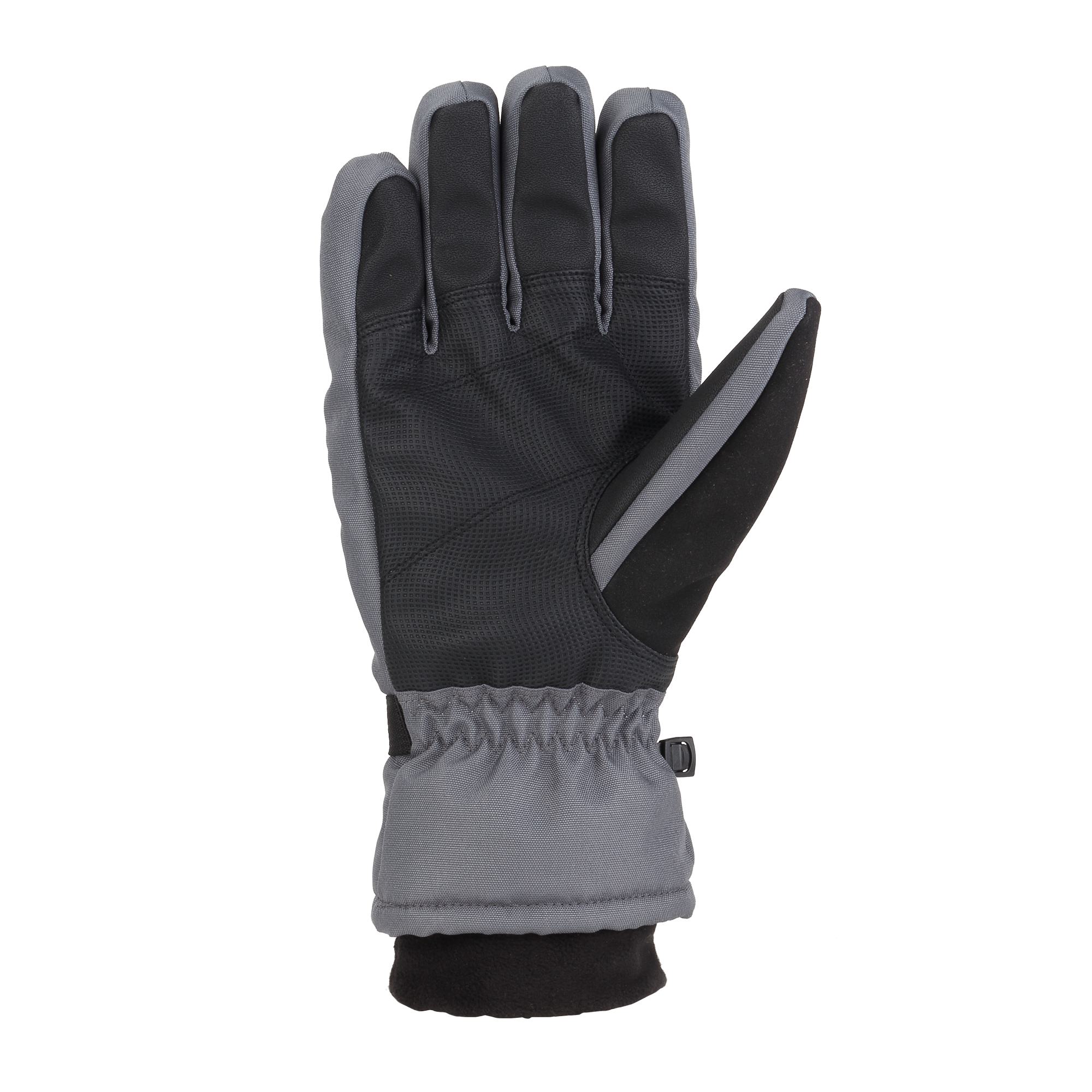 Men's all-purpose winter gloves. These men's winter gloves keep you warm when the temperature plummets. They have a durable shell with a grippy palm and a waterproof insert. The soft fleece cuff has an adjustable wrist strap to keep out snow and slush.