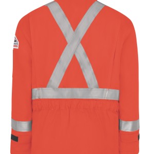 This heavyweight CAT 3 AR/FR parka is insulated to provide warmth and FR protection and CSA compliant visibility without excess weight. 2" reflective striping keeps you seen and safe, while water-repellent fabric keeps you dry in wet weather. CSA Z96 Class 2 Level 2 Compliant. Shell: Westex Ultrasoft® Flame resistant, 7 oz. (235 g/m²) Twill , Water-Repellent|Insulation Package: 12 oz.(405 g/m²) Shell: 88% Cotton/ 12% Nylon|Lining: 100% Cotton|Insulation Package: 100% Modacrylic Arc Rating ATPV 34 calories/cm² Two-way, separating, heavy-duty Nomex® taped, brass zipper, fully covered with insulated storm flap, concealed snap closure Fully insulated stand-up collar Three large patch pockets with concealed snaps (lower pocket with handwarmers), one inside chest pocket & sleeve pocket Industrial Laundry - Heavy Soil|Industrial Laundry - Light Soil|Home Wash