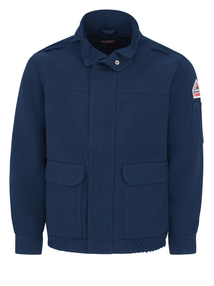 This lightweight CAT 2 FR/AR bomber-style jacket is lined to keep you warm and safe in the field. Water-repellent fabric helps you stay dry, innovative features like the elasticized waistband and deep-pleated action back increase comfort and mobility, utility loops on the shoulders provide convenient storage. Shell: 7 oz. (235 g/m²) Westex Ultrasoft® Flame Resistant Twill|Lining: 7 oz. (235 g/m²) Westex Ultrasoft® Flame Resistant Twill Shell: 88% Cotton / 12% Nylon|Lining: 88% Cotton / 12% Nylon Arc Rating ATPV 29 calories/cm² NFPA 2112 Category 3 Protection Separating, heavy-duty, Nomex® taped brass zipper, fully covered with two-layer storm flap, concealed snap closure Two large external patch pockets with concealed snap closure, with hand warmer & one inside chest pocket Industrial Laundry - Heavy Soil