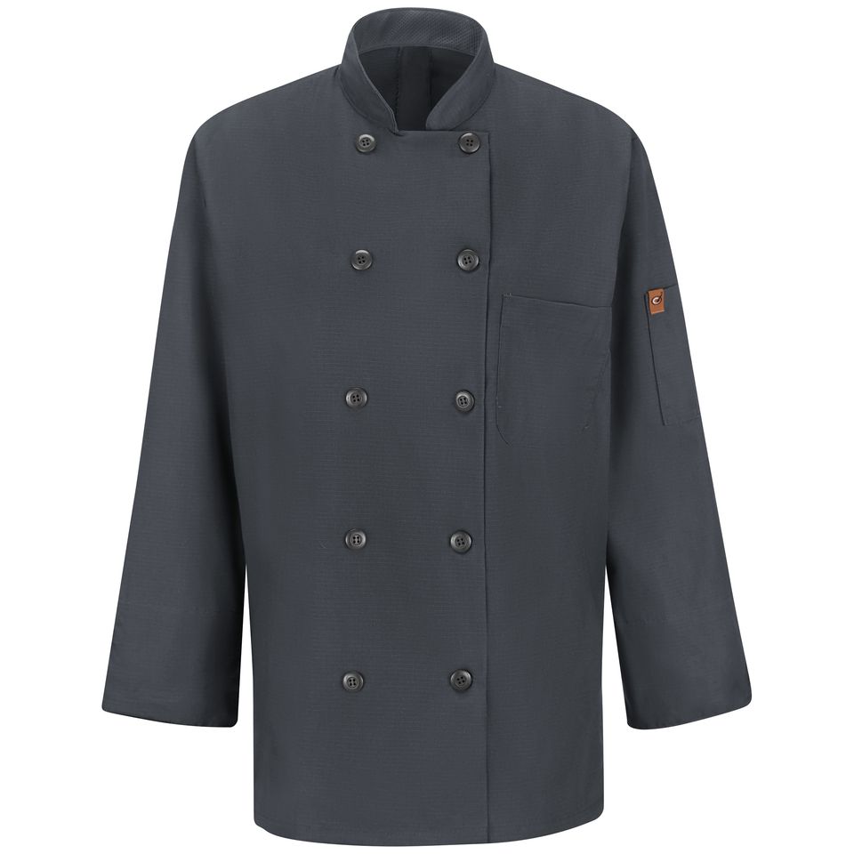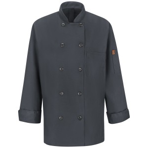 Forget about stains and motion restriction with our Women's Ten Button Chef Coat with MIMIX™ and OilBlok. It comes with strategically placed MIMIX™ stretch panels for enhanced mobility and maximum range of motion while performance mesh improves breathability. This chef coat is packed with features like OilBlok technology to repel liquids such as cooking oil and keep stains from forming so you look professional the entire day. It also has superior color rentention and wickability. This is the only women's chef coat like this on the market! 4.25 oz. RipstopBody: 4.25 oz. Ripstop 65% Polyester/ 35% CottonBody: 65% Polyester / 35% Cotton|Flex Panels: 100% Polyester Ten button closure Mesh lined stand-up collar looks professional while keeping you cool and comfortable 2 Left chest pocket, Thermometer pocket on left sleeve Industrial Laundry - OilBlok|Home Wash