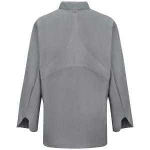 Forget about stains and motion restriction with our Women's Ten Button Chef Coat with MIMIX™ and OilBlok. It comes with strategically placed MIMIX™ stretch panels for enhanced mobility and maximum range of motion while performance mesh improves breathability. This chef coat is packed with features like OilBlok technology to repel liquids such as cooking oil and keep stains from forming so you look professional the entire day. It also has superior color rentention and wickability. This is the only women's chef coat like this on the market! 4.25 oz. RipstopBody: 4.25 oz. Ripstop 65% Polyester/ 35% CottonBody: 65% Polyester / 35% Cotton|Flex Panels: 100% Polyester Ten button closure Mesh lined stand-up collar looks professional while keeping you cool and comfortable 2 Left chest pocket, Thermometer pocket on left sleeve Industrial Laundry - OilBlok|Home Wash