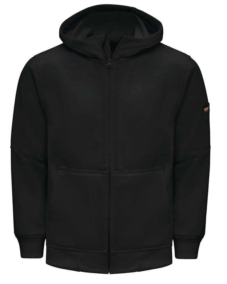Our work hoodie is designed to flow from first cup to last call - and all the hard work in between. Tackle your workday with confidence thanks to purpose-built features like tucked-away SafeCinch™ drawstrings that leave no loose ends, pockets-a-plenty to safely store a cell phone and keep go-to tools at the ready, a covered ZeroSkratch™ zipper that won’t scratch or catch in all the wrong places, and durable water repellent (DWR) finish that keeps you dry even when the weather isn’t. Plus, the easy on-and-off zip-up design means you can stay the course even when temps or weather think otherwise. Body: 9.3 oz. Fleece Body: 100% Polyester Covered zipper with zipper garage Front pouch pockets with cell phone security pocket | Sleeve utility pocket Industrial Laundry - Heavy Soil|Home Wash