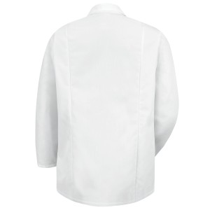 This one-piece counter coat has blazer styling with a rounded front hem and a lined collar with notched lapel. The left chest pocket and two lower pockets make storing tools of the trade easy and the non-yellowing UV buttons make for long-lasting whiteness through industrial laundering. The women’s three button front closure style also features princess seams on the back. 5 oz. Performance Blend Poplin 80% Polyester / 20% Combed Cotton Four buttons One-piece, lined, notched lapel Left exterior chest pocket, Bartacked pencil stall, Two lower exteriorpockets Industrial Laundry - Heavy Soil|Industrial Laundry - Light Soil|Home Wash