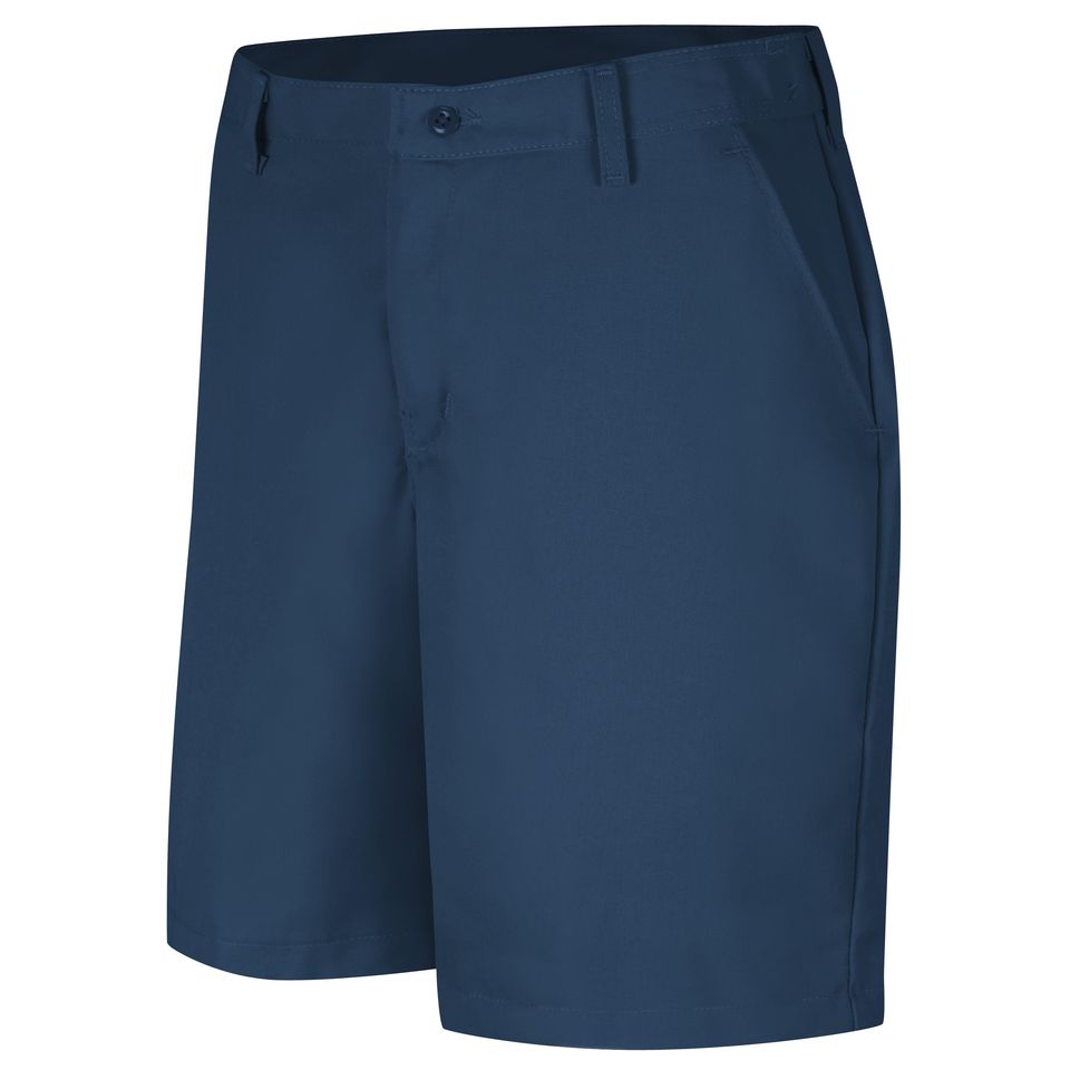 Don’t sell yourself short. Our plain front work short is ready to help you get the job done, no matter how much movement is involved. Perfect for the workers who need to squat, bend, or move quickly, these work shorts are designed from a durable fabric that is also color retentive and stain resistant. No matter how tough the job, these shorts will always come back ready for round two. 7.5 oz. Twill 65% Polyester / 35% Cotton Heavy-duty brass ratcheting zipper, button closure Two slack-style front pockets, two set-in hip pockets, left has button closure, darts over hip pockets for better fit Continuous one-piece folder set Industrial Laundry - Heavy Soil|Industrial Laundry - Light Soil|Home Wash