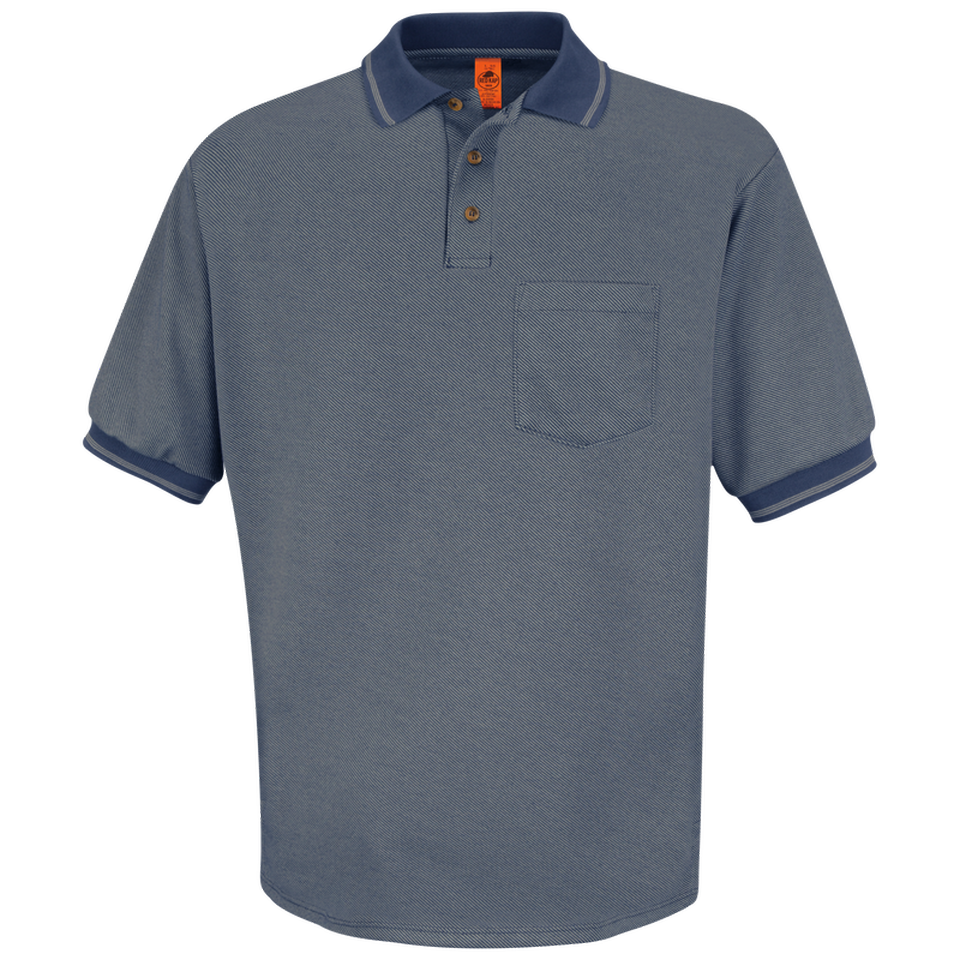 Looking great is no sweat. Give yourself a promotion with the comfort and upscale look of this short-sleeve knit twill. The stain-resistant, moisture management material is styled with a traditional rib-knit collar, spade style pocket, and tortoise shell buttons. With soil release, shrinkage control, and ability to handle industrial laundry, your look is the picture of staying cool under pressure. 7 oz. Twill Weave Knit 50% Polyester / 50% Cotton Three tortoise shell button front, lined placket Rib knit collar with contrast striping One hemmed, spade-style Industrial Laundry - Heavy Soil|Industrial Laundry - Light Soil|Home Wash