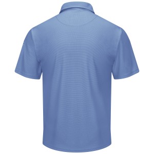 This knit short-sleeve work polo displays exemplary work ethic. It's made of durable, snag-resistant fabric but doesn't skimp on comfort. The knit fabric also wicks away sweat throughout the workday to help you stay dry and confident. The bonus of a pocket sleeve and tagless label make this work polo popular with workers in construction, manufacturing, transportation, distribution, and beyond. 5.3 oz. Performance Knit 100% Polyester Three button placket Self-fabric banded collar Double pencil pocket stall on left sleeve Industrial Laundry - Heavy Soil|Industrial Laundry - Light Soil|Home Wash