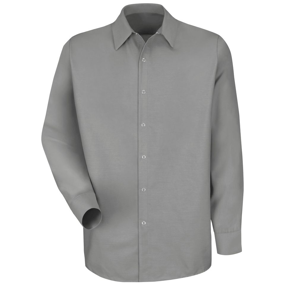 Our long-sleeve, snap-up work shirts might look simple, but these snap shirts are packed with performance features for food processing jobs. For starters, its regular fit means your work shirt offers true-to-size measurements and is enhanced by stain-release, lightweight fabric. This fabric is also designed to wick away sweat, keeping you dry and comfortable in any working conditions. 4.25 oz. Poplin 65% Polyester / 35% Cotton Seven gripper front Two-piece, lined, sewn-in stays Industrial Laundry - Heavy Soil|Industrial Laundry - Light Soil|Home Wash