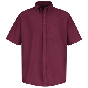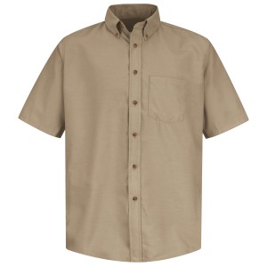This short sleeve dress shirt is ready for business. Its smart styling features a convenient chest pocket and unique wood-tone buttons. A box pleat in the back allows for a comfortable range of motion while the fabric manages moisture to help keep you dry and comfortable on the job. No matter the occasion, the work shirt has the professional look and performance quality you need. 4.25 oz. Poplin 65% Polyester / 35% Cotton Seven woodtone button front including button at neck Two-piece, lined, banded, topstitched, button-down One hemmed, spade-style, with triangular stitched corners Industrial Laundry - Heavy Soil|Industrial Laundry - Light Soil|Home Wash
