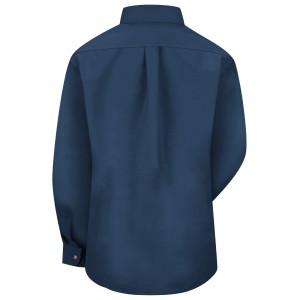 Show off your refinement in our solid black Poplin Dress Shirt. Designed with a box-pleated back, a two-piece collar, and a button-close front, this shirt is ready to keep you looking professional in the office. And thanks to the Touchtex finish, the shirt has enhanced soil release abilities, a durable press, and wickability that help keep it clean and ready to go day after day. 4.25 oz. Poplin 65% Polyester / 35% Cotton Seven woodtone button front Two-piece, lined, banded, topstitched, button-down No pockets Industrial Laundry - Heavy Soil|Industrial Laundry - Light Soil|Home Wash