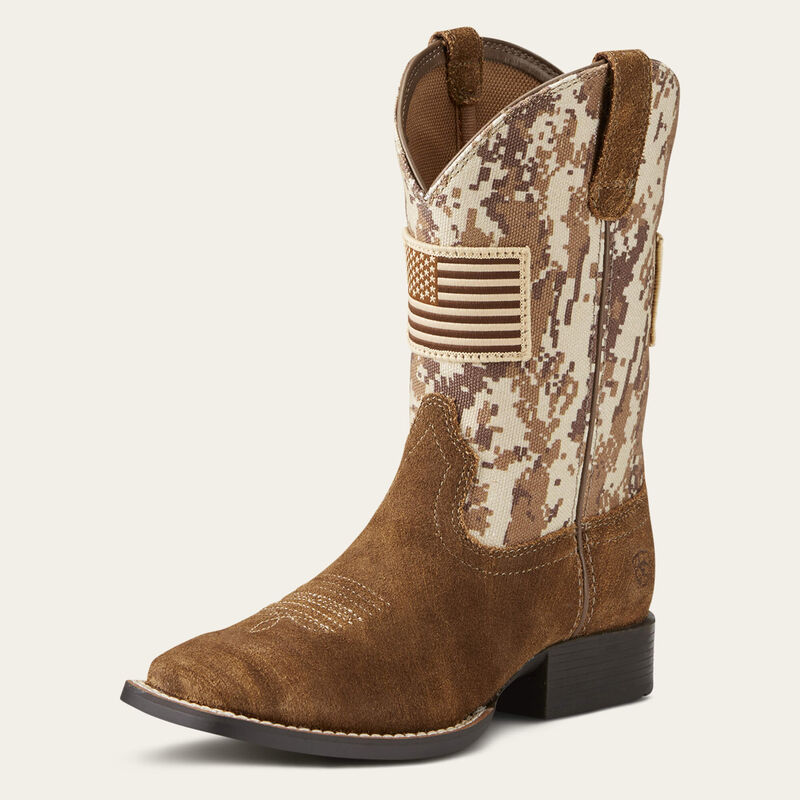 Pride for the ride. These boots feature an American flag patch overlay on supple leather, plus an innovative, removable footed makes longer wear possible as your child grows.