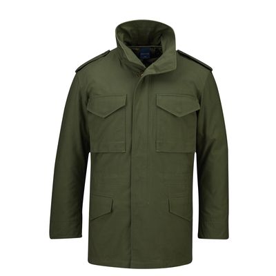 Once a top-of-the-line military outerwear staple, the Propper® M65 Field Jacket has now become an icon and customer favorite!  Classic features such as shoulder epaulets, packable hood, storm flapand and four flap pockets with snap closures all reinforce the functional utilitarian styling. A 50/50 blend of nylon and cotton sateen and removable quilted liner provide an extra layer of warmth in cold conditions while a durable water repellent (DWR) finish keeps you dry and looking your best. Perfectly suited as a field coat in the elements or a casual layer around town.