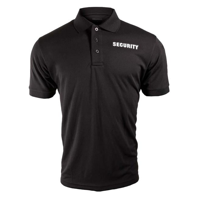 • Light-weight 4.2 oz 100% polyester piqué • Screenprinted SECURITY on front and back • Keeps you cool and dries quickly • Soft, flexible, and won't bunch up • Resistant to fading, shrinking, and wrinkling • Ribbed knit collar and sleeve cuff • Pen pocket on left sleeve • Sunglass loop • Imported