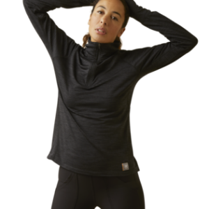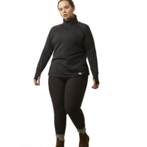 • Greater Arm Mobility™ lets you move freely • Moisture Movement Technology™ helps keep you dry • Watch Window provides easy access to wearable tech • Heat transfer logos • Quarter-zip front • Thumb access holes for work gloves