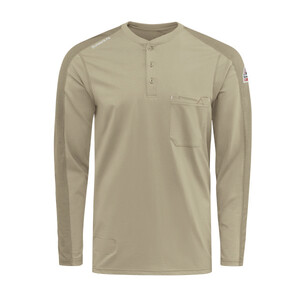 A hard-working Henley with a casual, contemporary look. The lightweight fabric flexes for added comfort and range of movement, curved flatlock seams for optimal fit, unique front pocket design with pencil stall. CAT 2/2112 left sleeve label leaves no question you’re protected on the job site.