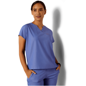 A distinctive collar and cap sleeves make our Eliza Top a stylish alternative to a traditional scrub. Made from our Nua™ recycled stretch fabric, it's engineered to keep you cool, comfortable, and fresh all workday.