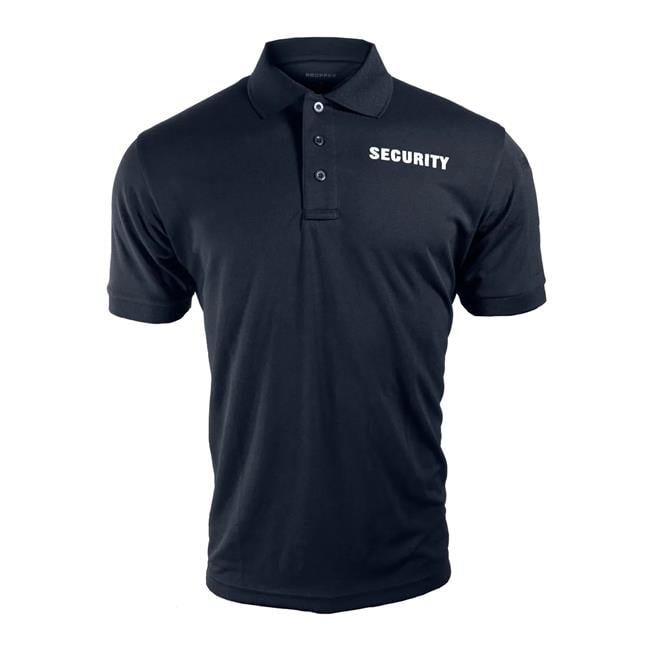 • Light-weight 4.2 oz 100% polyester piqué • Screenprinted SECURITY on front and back • Keeps you cool and dries quickly • Soft, flexible, and won't bunch up • Resistant to fading, shrinking, and wrinkling • Ribbed knit collar and sleeve cuff • Pen pocket on left sleeve • Sunglass loop • Imported