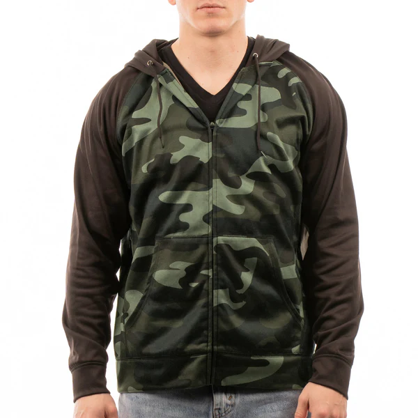 6 oz. 100% polyester performance hoodie Raglan sleeves Front pouch pockets Overlock stitching detail Hemmed bottom & cuffs Black draw cord Nylon zipper Sizes: S-3XL
