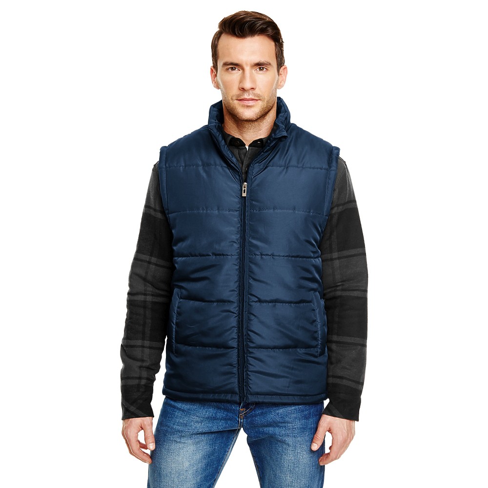 4.0 oz. 100% polyester puffer vest Heavy fill insulation Barrel toggle waistband Side entry pockets Zipper pull cover on collar Sizes: S-3XL