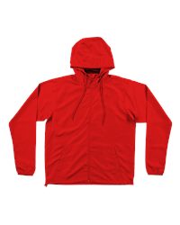 100% polyester light windbreaker Weather resistant Interior coating Rubber zipper pulltab Reversed zipper tape Fine mesh hood liner SCUBA neck Waistband toggle Storm flap zipper cover Sizes: S-3XL (Black available in XS-5XL)