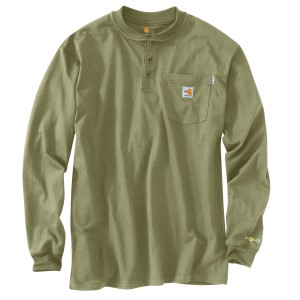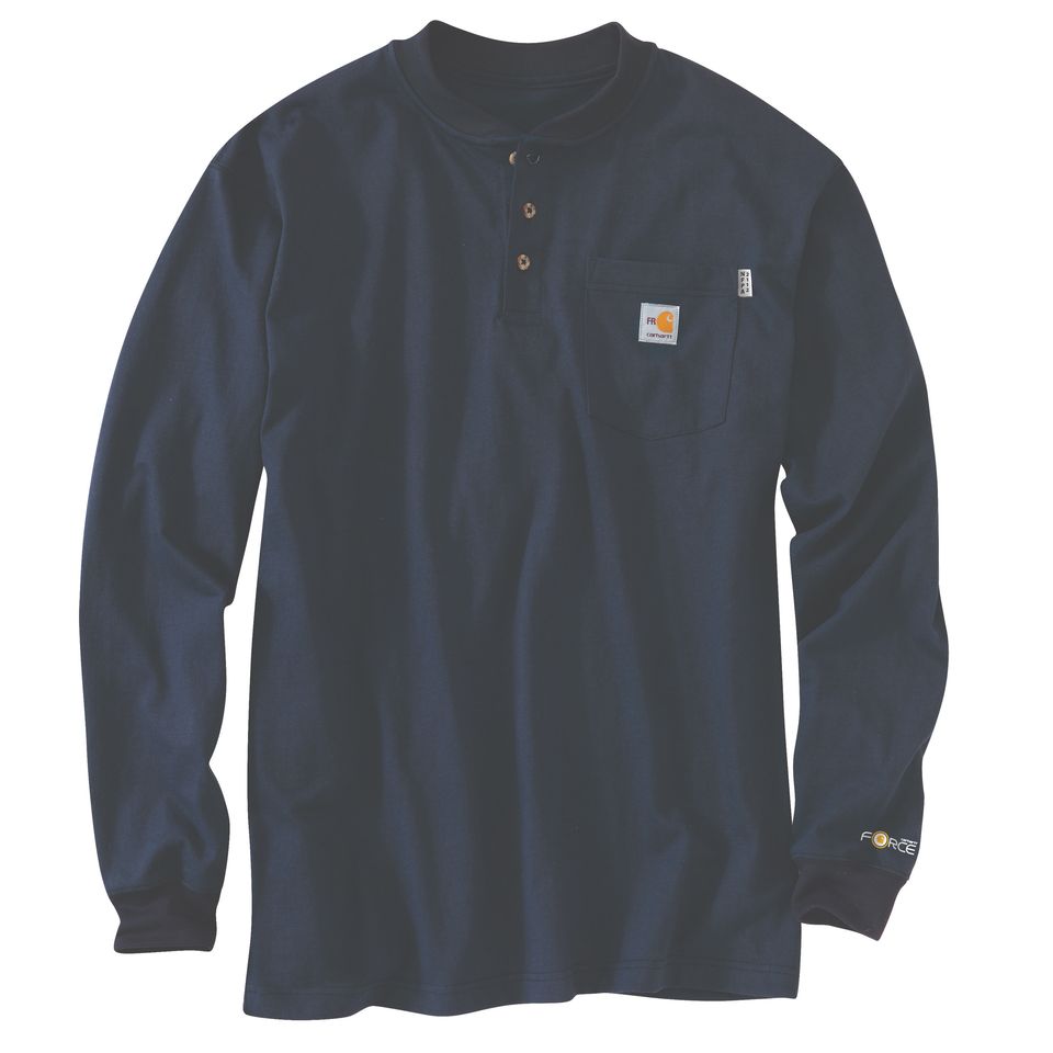 Description When you need to stay covered on the job, this men's flame-resistant henley has your back. The shirt is made for comfort from lightweight FR jersey that wicks away sweat and fights odor. It Features its rating labels right on the chest pocket, making it quick and easy for safety checks. Features 6.75-ounce, 100% cotton FR jersey Meets the performance requirements of NFPA 70E UL® classified to NFPA 2112 Carhartt FR and NFPA 2112/CAT 2 labels sewn on pocket Built with Force technology to wick sweat and dry fast FastDry® technology wicks away sweat and fights odors Model Height: 6'2" Chest Size: 40.5" Wearing Size M Side-seam construction minimizes twisting Rib-knit henley collar with three-button placket Left chest pocket Model No. TK0237-FRM Country of Origin: Imported