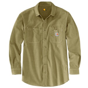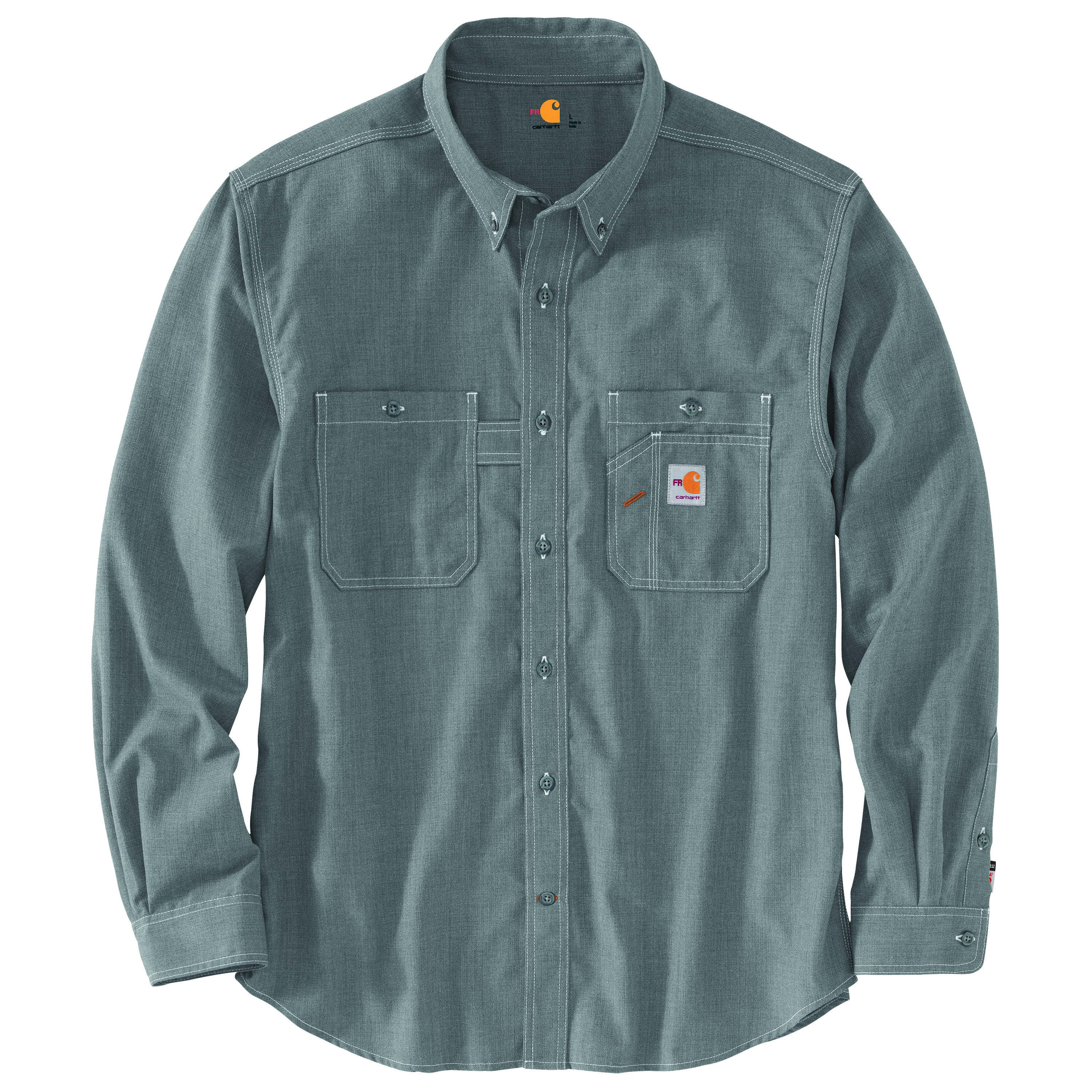 Features 4.7-Ounce, FR Twill: 50% Lenzing™ FR / 38% aramid / 10% polyaminde / 2% anti-stat Inherent fabric benefits: Flame-resistant, mositure wicking, fast-drying, colorfastness, anti-static, wrinkle-resistant FastDry® technology wicks away sweat and fights odors Button-down collar with button closure FR melamine buttons Two chest pockets with button closures Extended sleeve plackets with two-button adjustable cuffs Triple-stitched main seams Carhartt FR label sewn on left pocket; NFPA 2112/CAT 2 label sewn on sleeve placket Meets the performance requirements of NRPA 70E / ASTM F1506 and is UL® Classified to NFPA 2112 Model No. TW4138-FRM Country of Origin: Imported
