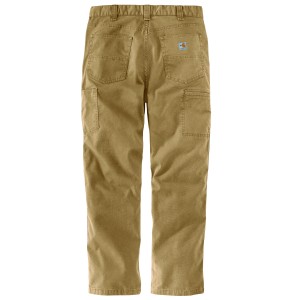 Description These men's canvas work pants take durability one step further with a certified flame-resistant rating. The midweight canvas maintains its comfortable feel and light stretch for easy movement. Dedicated phone and utility pockets keep essentials within reach. The relaxed fit gives you enough room to bend, squat, and get the job done. Features 9-ounce, 98% cotton / 2% spandex canvas Meets the performance requirements of NFPA 70E UL® Classified to NFPA 2112 Built to move with Rugged Flex stretch technology Comfortable fit through the seat and thigh with more room to move and a straight leg opening Strong sewn-on-seam belt loops Right-leg secured cell phone pocket Left-leg utility pocket Carhartt FR and NFPA 2112/CAT 2 labels sewn on coin pocket Model No. BN2517-FRM Country of Origin: Imported