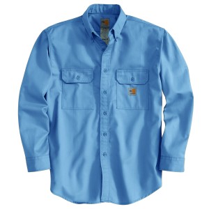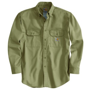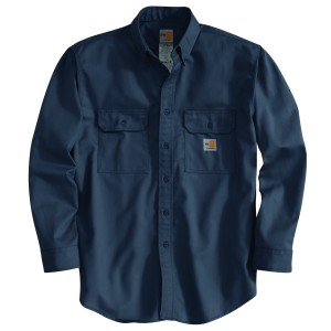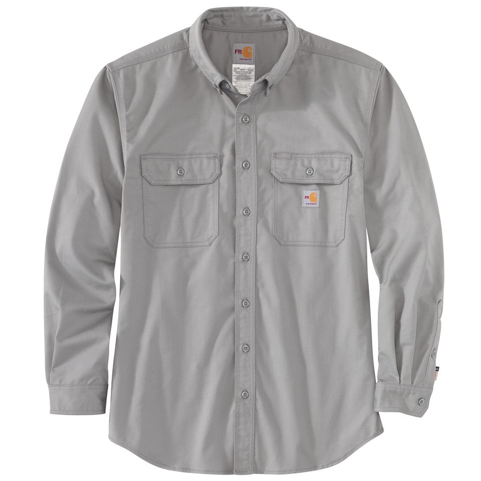 Description Designed to handle the most rugged working conditions, this men's button-down shirt keeps you safe from dangerous arcs and flame. It's made of FR twill, with durable triple-stitched seams. The utilitarian design Features two flap pockets on the chest. Features 7-ounce, 88% cotton / 12% high-tenacity nylon FR twill Meets the performance requirements of NFPA 70E UL® classified to NFPA 2112 Carhartt FR label sewn on left pocket; NFPA 2112/CAT 2 label sewn on sleeve placket Carhartt-strong triple-stitched main seams Button-down collar and front; Flame-resistant melamine buttons Extended sleeve plackets with adjustable two-button cuffs Two chest pockets with flaps and button closures Model No. TW0160-FRM Country of Origin: Imported