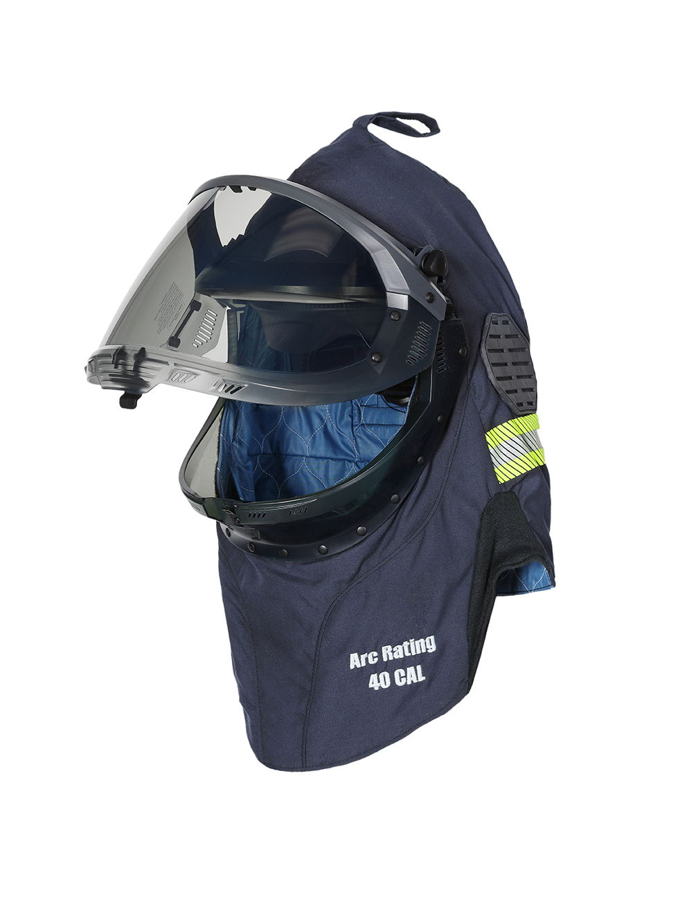 Enespro 40 cal AirLite Arc Flash Lift Front Hood Arc Flash PPE Front bib lined with FR Control for soft touch and odor control PureView™ faceshield technology features a greater range of visibility Premium anti-fog and scratch resistant coating Lift front shield makes it easy to obtain fresh air while out of the hazard zone 2 large “Arc Vents” dramatically increases air-flow, improves sound & communication Single fan can be purchased separately to to provide a gentle breeze that keeps you cool and decreases lens fogging 3M™ Scotchlite™ FR silver and yellow reflective trim Embroidered with arc rating 11.5 oz fabric system with DRIFIRE® 4.4™ shell over layers of DuPont™ Nomex® USA CAT 4 40 cal/cm² NFPA 70E CSA Z462 ASTM F1506 OSHA 1910.269