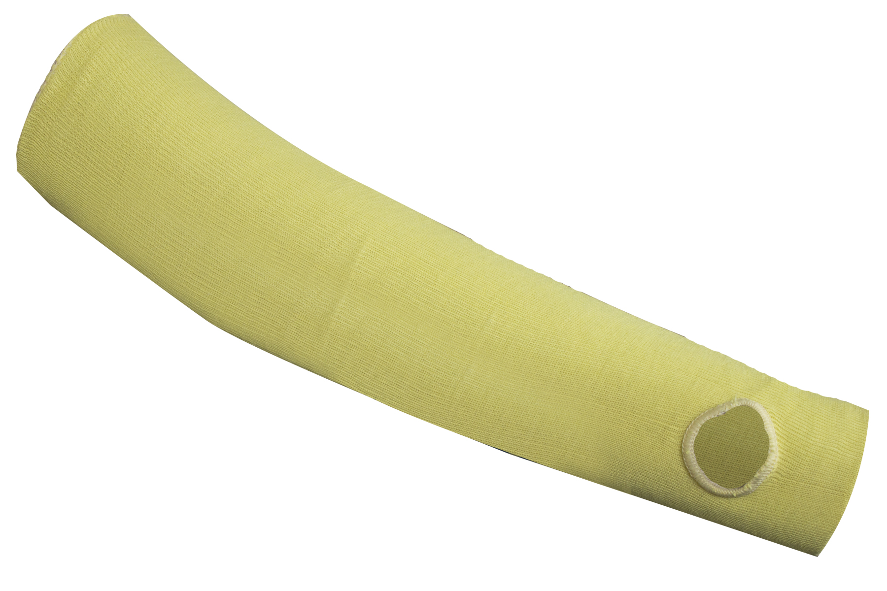 NSA Cut Level A3 Knit Sleeve with Thumbhole Cut & Abrasion Protection Stretch knit provides comfort and flexibility Worn to elbow or middle of upper arm Thumbhole for more coverage of the palm and back of hand Provides cut, puncture, abrasion, and high heat protection Two-ply Aramid Knit USA Cut Level A3 Abrasion Level 2 Puncture Level 5 Heat Level 2