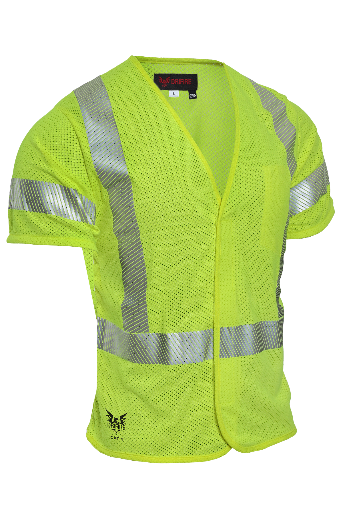 DRIFIRE FR Hi-Vis Mesh Class 3 Vest Men's FR Work Wear Inherently flame resistant, FR protection will not wash/wear out FR hook and loop front closure Inside vest front pocket FR 3M™ Scotchlite™ Reflective Comfort Trim Lightweight and breathable mesh fabric 5.8 oz. FR Mesh USA CAT 1 4.6 cal/cm² Type R Class 3 NFPA 70E CSA Z462 ASTM F1506 OSHA 1910.269