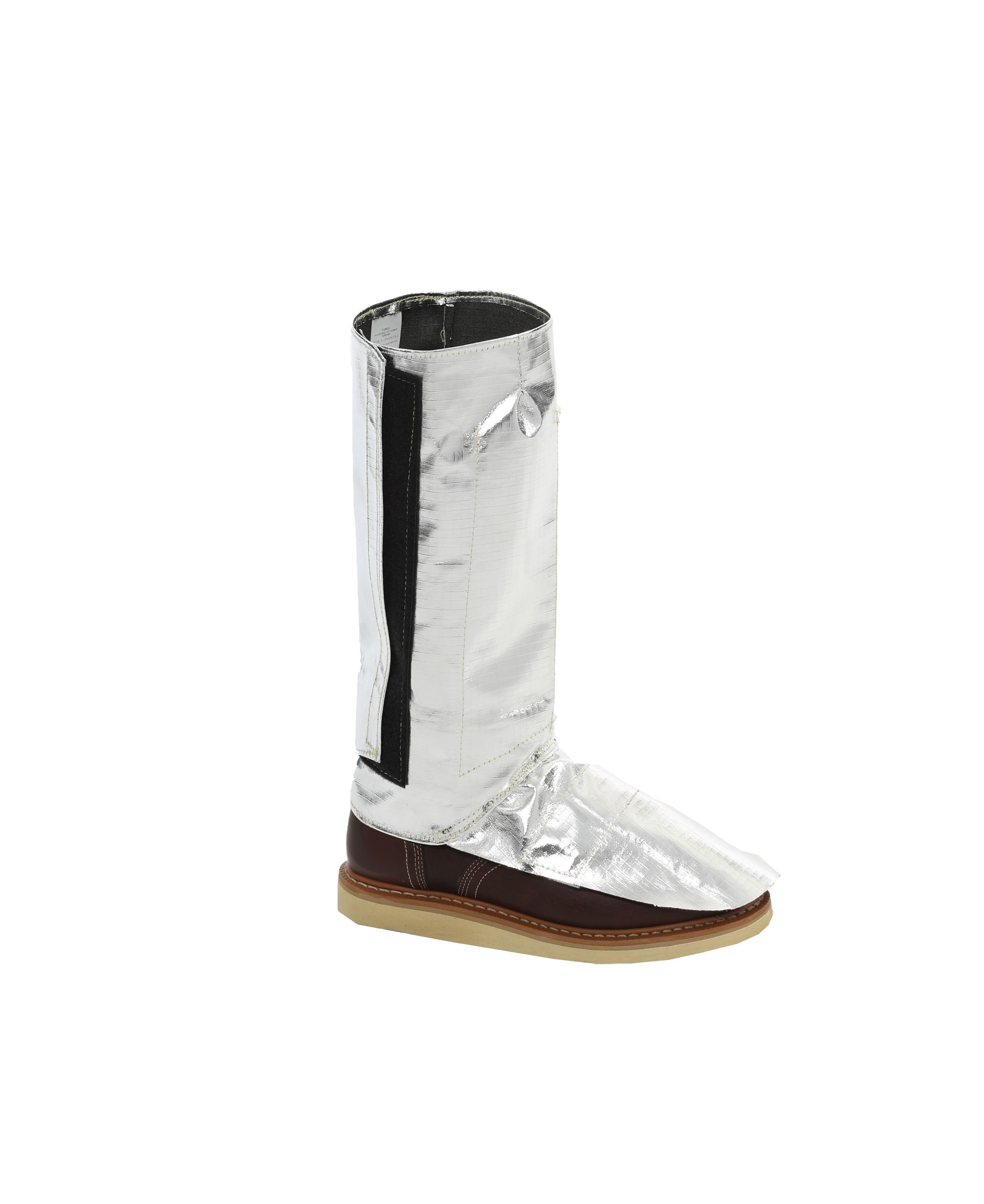 NSA CARBON ARMOUR Aluminized OPF Ripstop Leggings Primary Aluminized Protection FR hook and loop closure Aluminized foot flap with soft steel Fits over work boot Protection from radiant heat, sparks, and molten metal splash hazards Includes fiber stays in shin pocket for added stability Lightweight comfort without sacrificing protection 11 oz. Aluminized OPF-Carbon Rip-Stop Blend USA ASTM F955 ASTM F1939