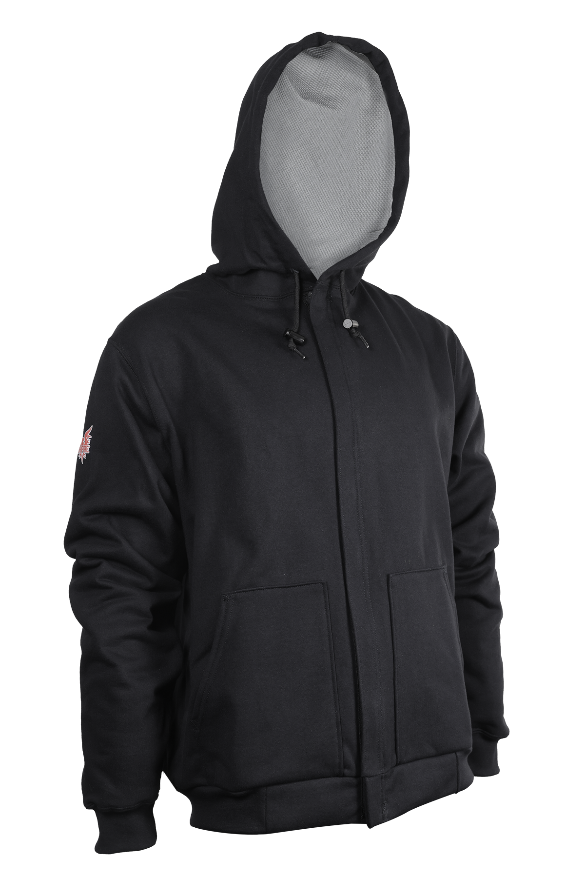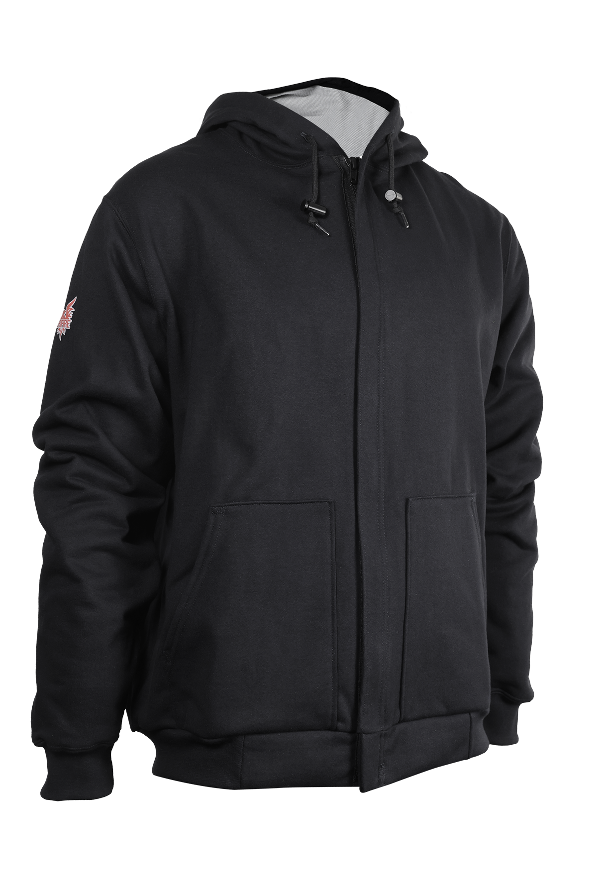 DRIFIRE FR Lined Zip Front Hoodie Men's FR Work Wear Soft FR/AR heavyweight fleece for warmth and protection Large drawstring hood fits over hard hat Generous cut allows for unrestricted movement Rib knit cuffs and waistband prevents riding up Covered FR zipper front closure Lined for added comfort and protection Inherently flame resistant, FR protection will not wash/wear out FR fabric that will not melt, drip, or ignite Cord locks keep hood cinched and in place 2 front patch pockets 14 oz. FR Fleece/6.5 oz. Waffle Liner USA CAT 3 39 cal/cm² NFPA 70E NFPA 2112 CSA Z462 ASTM F1506 OSHA 1910.269