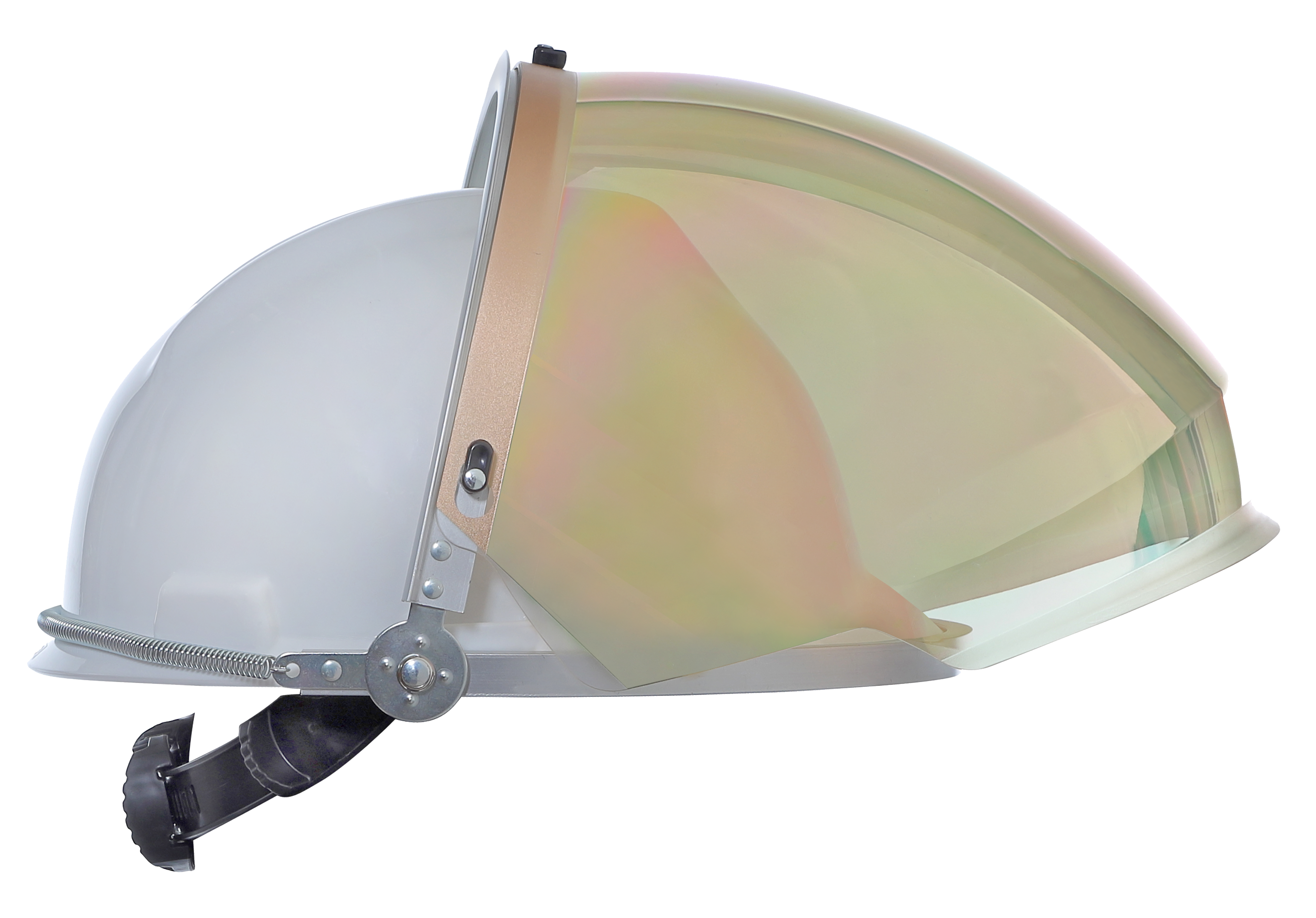 NSA Gold XTR Extreme Heat Faceshield with Metal Bracket High Heat Head Protection Recommended for extreme temperature industrial applications Extreme Heat Protection – Premium gold coating reflects extreme radiant heat and infrared radiation Impact Protection – Durable injection molded polycarbonate protects against high-speed impact Visual Clarity – Innovative Toric shape reduces glare and visual distortion Increased Field of Vision – Transparent chin cup and wider Toric shield extends peripheral vision & improves situational awareness Compact Coverage – Low profile design is more convenient for work in confined spaces Metal Bracket – Built to withstand prolonged exposure to high heat environments Compatibility – Bracket is compatible with most manufacturers’ cap style hard hats Hard hat not included Polycarbonate with Gold Hard Coating USA Impact Rating Z87+ Infrared Radiation R4 Visible Light L2.5