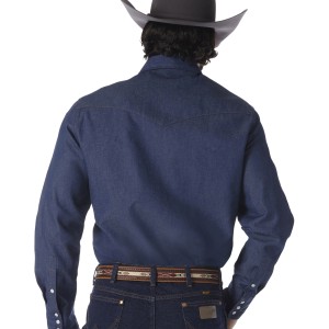 THE WESTERN WORK SHIRT YOUR WARDROBE NEEDSTo tackle projects both on and off the job, you'll want a sturdy shirt that can handle everything you throw at it. Luckily, the Wrangler® Cowboy Cut® work shirt is a tried-and-true staple that performs from dawn until dusk. Our men's Cowboy Cut® rigid denim long sleeve shirt features a classic fit as well as a 100% cotton construction that's untouched, untreated, and unwashed. Plus, it comes with all the authentic Wrangler® details you know and trust, including Western front and back yokes, spade flap pockets with snap closures, and three-snap cuffs. Complete your look by pairing this Cowboy Cut® work Western rigid denim shirt with our Cowboy Cut® jeans.Long Live Cowboys®