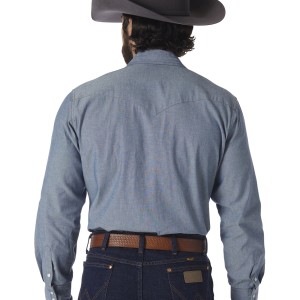 • Fit: Classic • Sleeve Length: Long • Front Closure: Snaps • Front Pockets: Two spade • Back: Authentic Western Back Yoke • Collar: Spread • Cuff: Three Snap Closure • Material: 100% Cotton Yarn Dyed Chambray, 5 oz. • Material Weight: 5 oz.