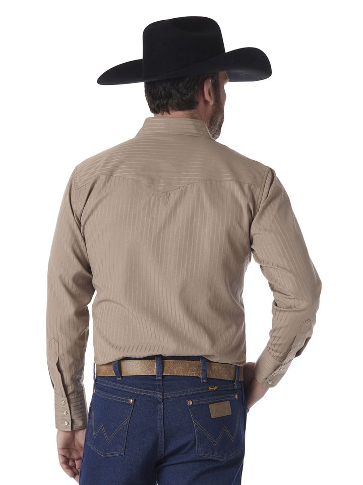 TONE ON TONE WESTERN SHIRT WITH A SPORTY TWIST.It's a subtle touch, but a stylish one -- look closely and you'll see the tone on tone stripes on this long sleeve shirt. It's a quiet polish to an authentic Western favorite.