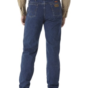 TAKE WRANGLER WITH YOU TO WORKOur top priority is keeping you safe on the job site, which is why we take flame resistance seriously. Our Wrangler® FR jeans are built to last through the rigors of dangerous and rugged working conditions, so you can dress for the job with complete confidence. Each pair of our flame-resistant (FR) jeans is made of pre-washed, heavyweight cotton denim for a comfortable feel and fit, but that's not all. With a full seat and thigh, these FR jeans feature the same fit as the Original Cowboy Cut 13MWZ that you know and love. They come fully equipped with our authentic five-pocket styling, 'W' stitching on the back pockets, and a bright orange ID patch on the outside for increased visibility. Not too loose. Not too tight. Plus, these hard-working jeans fit over boots.Certifications vary by wash Prewash: ATPV 24.0 CAL/CM2. Meets NFPA 70e/NFPA 2112 Certification. CAT2. Dark Wash: ATPV 21.0 CAL/CM2. Meets NFPA 70e/NFPA 2112 Certification. CAT2.
