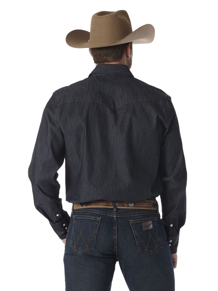 LIVE A LITTLE.The Wrangler® Advanced Comfort long-sleeve work shirt will be a standout in any situation. It has authentic Western yokes, two authentic snap flap pockets with pencil slot and Wrangler® riser label on the left pocket. The W stitching on the front chest pocket gives this premium shirt a dash of Western style.