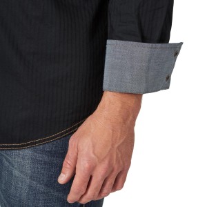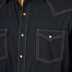 • Fit: Slim • Sleeve Length: Long • Front Closure: Snaps • Front Pockets: Two with snaps • Back: Authentic Western Back Yoke • Collar: Spread • Cuff: Two Snap Closure • Material: 100% Cotton Dobby