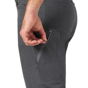 • Fit: Straight • Lining: Unlined • Rise: Mid • Front Rise: 10 1/2" • Leg: Straight • Leg Opening: 16 1/2" • Front Pockets: Secure zip utility pockets • Back Pockets: Two back pockets with no closure • Material: 98% Cotton, 2% Spandex, 8.9 oz. • Material Weight: 8.9 oz.