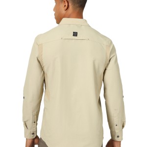 • Sleeve Length: Long • Front Closure: Buttons • Front Pockets: Secure zip utility pockets • Back: Straight Back Yoke • Collar: Spread • Cuff: Two Button Closure • Material: Body: 73% Nylon, 27% Polyester; Knit: 92% Polyester, 8% Spandex