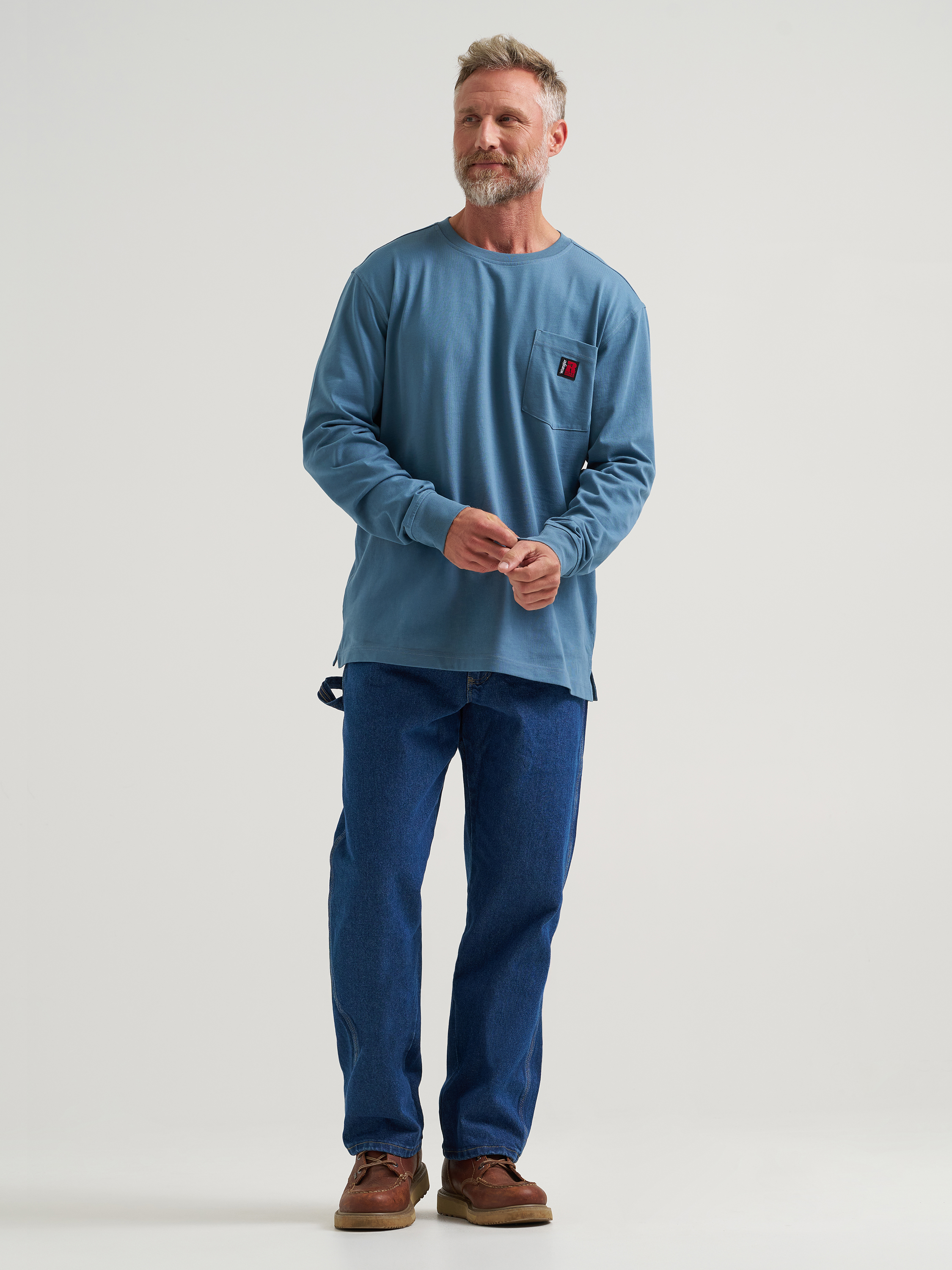 Here’s a casual look that can handle your toughest workdays: the Wrangler® RIGGS Workwear® Relaxed Crew T-Shirt. Cut with a looser fit for moving easily through whatever the job demands, this 100% cotton tee will keep you feeling comfortable. It comes with a tagless label and taped neck seams for irritation-free comfort, as well as vented side seams for extra airflow. You’ll have a chest pocket with a hidden utility loop to keep essentials close. And long sleeves shield you from the sun in the season to come.