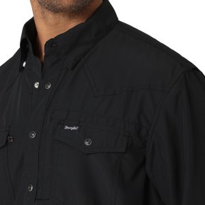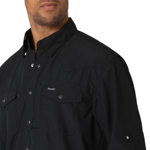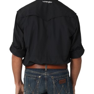 WESTERN RELIABILITYTake on the unexpected in one of our most dependable shirts. The Wrangler® performance long-sleeve solid snap shirt comes with everything you need to take on the day, including UV protection from the sun’s harmful rays and a moisture-wicking finish to keep you feeling dry. This classic fit shirt is crafted for unparalleled performance and comfort, complete with a back vent for breathability. It also features that classic western styling you know and love, including pointed yokes and a full snap closure. You’ll have plenty of space for your essentials between the double chest pockets, a Napoleon-style pocket on the left chest pocket, a dedicated pencil slot, and a glasses cleaner at the hem. Wear this performance snap shirt with your favorite pair of Wrangler jeans or utility pants for a formidable outfit.