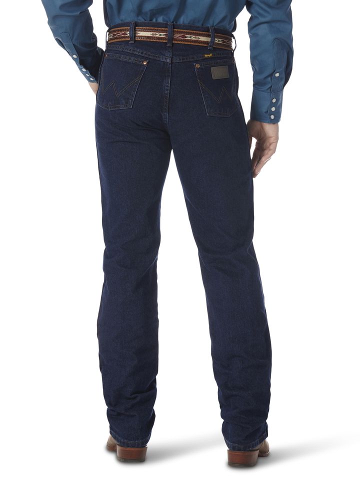 A WARDROBE CLASSIC FOR EVERY COWBOYFor more than 70 years, our 13MWZ Cowboy Cut® jeans have been a tried-and-true wardrobe staple for cowboys across the country. Today, 13MWZ is the official ProRodeo competition jean. We knew a good thing when we saw it, which is why the Wrangler® Cowboy Cut® jeans haven't changed much since they were first designed by 'Rodeo Ben' Lichenstein in 1947. These comfortable, durable jeans come fully equipped with all the authentic details you'd expect from a hallmark of cowboy culture, including a classic neolite patch, fully felled side seams that lie flat for a more comfortable ride, five-pocket styling, and our signature 'W' stitching. The leg is straight but wide enough to fit over your cowboy boots (but this jean looks just as good with sneakers). The higher rise and 7 belt loops keeps your belt secure and your shirt tucked in. When it comes to keeping your wardrobe in check and ready for anything, you can never have too many pairs of the men's Cowboy Cut® Wrangler® jeans. Look for the W on the Pocket®