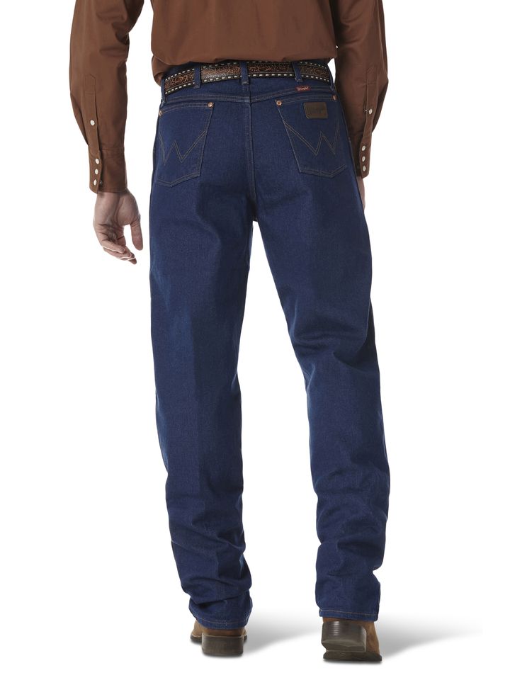 When you need a durable, easy-wearing solution for work or play, you can always count on Wrangler® Cowboy Cut® relaxed jeans to get the job done and look great in the process. Since 1947, our men's Cowboy Cut® jeans have been a closet staple for cowboys across the country. Today, they come with all the classic features you know and expect from a genuine pair of Wrangler® jeans, including our authentic five-pocket styling, leather patch, and copper rivets. These men's relaxed fit jeans feature a roomy fit through the seat, thigh, and knee as well as a high rise for all-day comfort. Dressed up or down, you're going to feel and look your best in these authentically Western jeans.