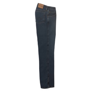 • Fit: Regular • Rise: High • Front Rise: 11" • Leg: Straight • Leg Opening: 16" • Front Closure: Zip-Fly with button closure • Front Pockets: Three • Back Pockets: Two back pockets with no closure • Material: 85% Cotton/13% Polyester/2% Elastane; 11.25 oz. Stretch Denim • Material Weight: 11.25 oz. Stretch Denim • Stretch: Some Stretch