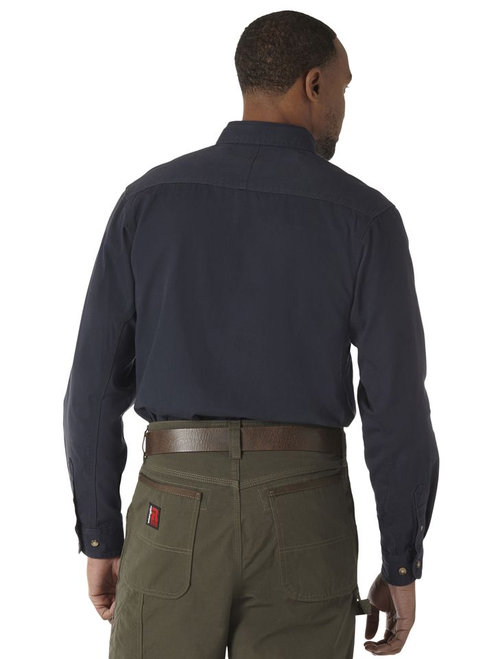 RIGGS WORKWEAR TWILL WORK SHIRT IS A CLASSIC FOR THE WORKDAY AND BEYOND.Trust our exclusive room2move™ fit for comfort -- side gusset detail for greater range of motion. Two front chest pockets with hidden utility loop. Two button adjustable cuff. This Wrangler® RIGGS Workwear® shirt has a lifetime warranty.